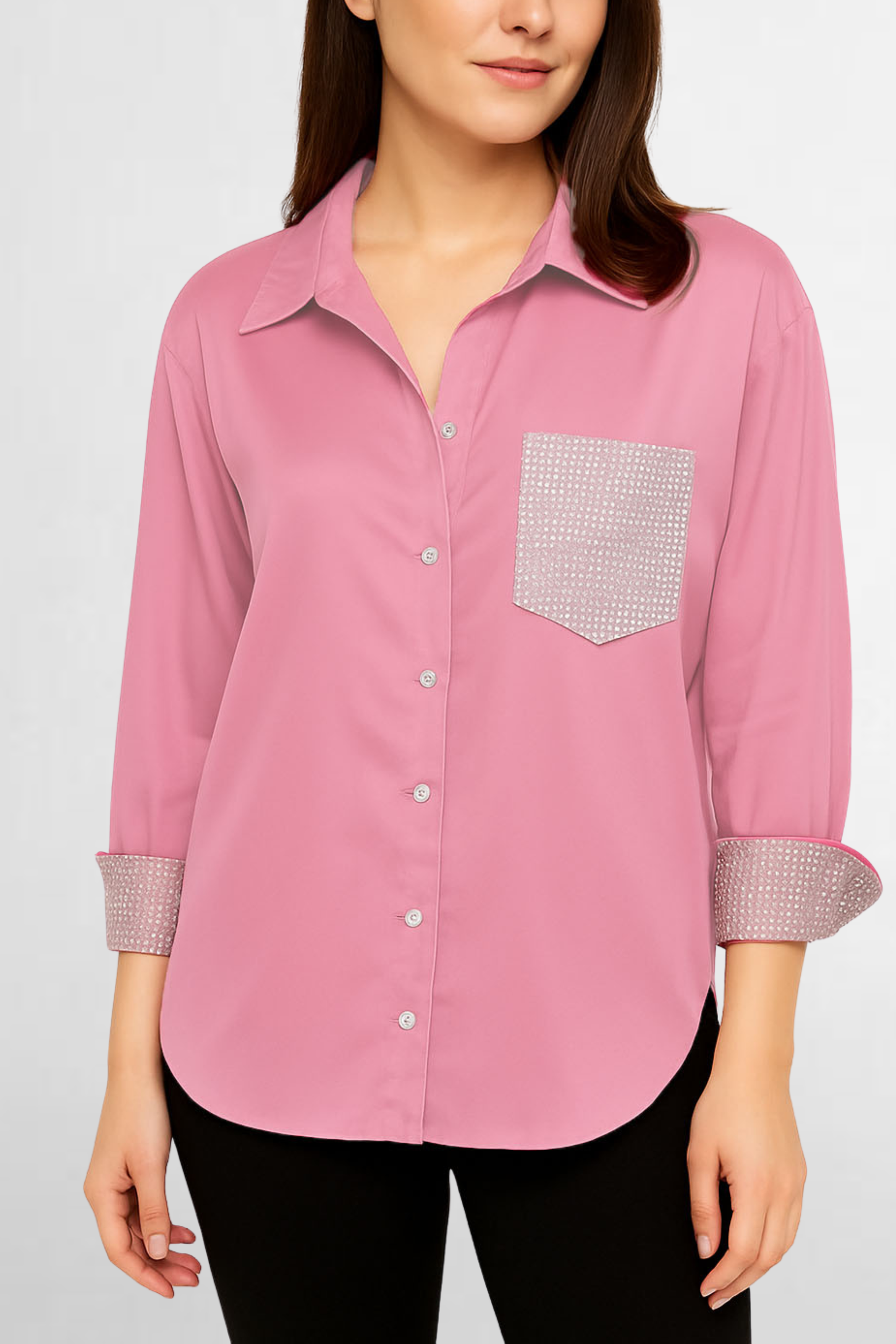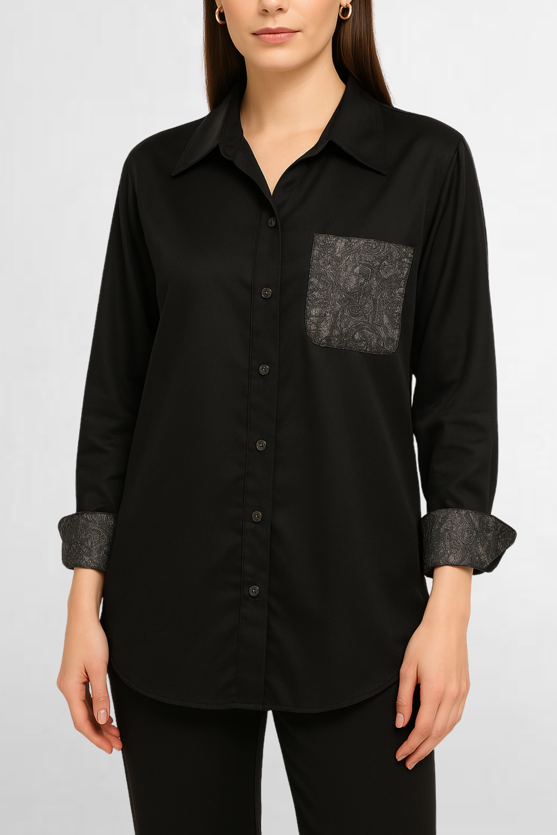 - Chic Contrast – Accented with a subtly embellished pocket and inner cuffs, it adds just the right touch of sparkle to elevate your outfit.