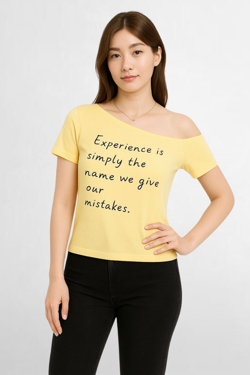 Chic Quote Graphic – Featuring a hand-lettered style quote that reads “Experience is simply the name we give our mistakes,” this tee brings thoughtful charm and personality to your outfit.