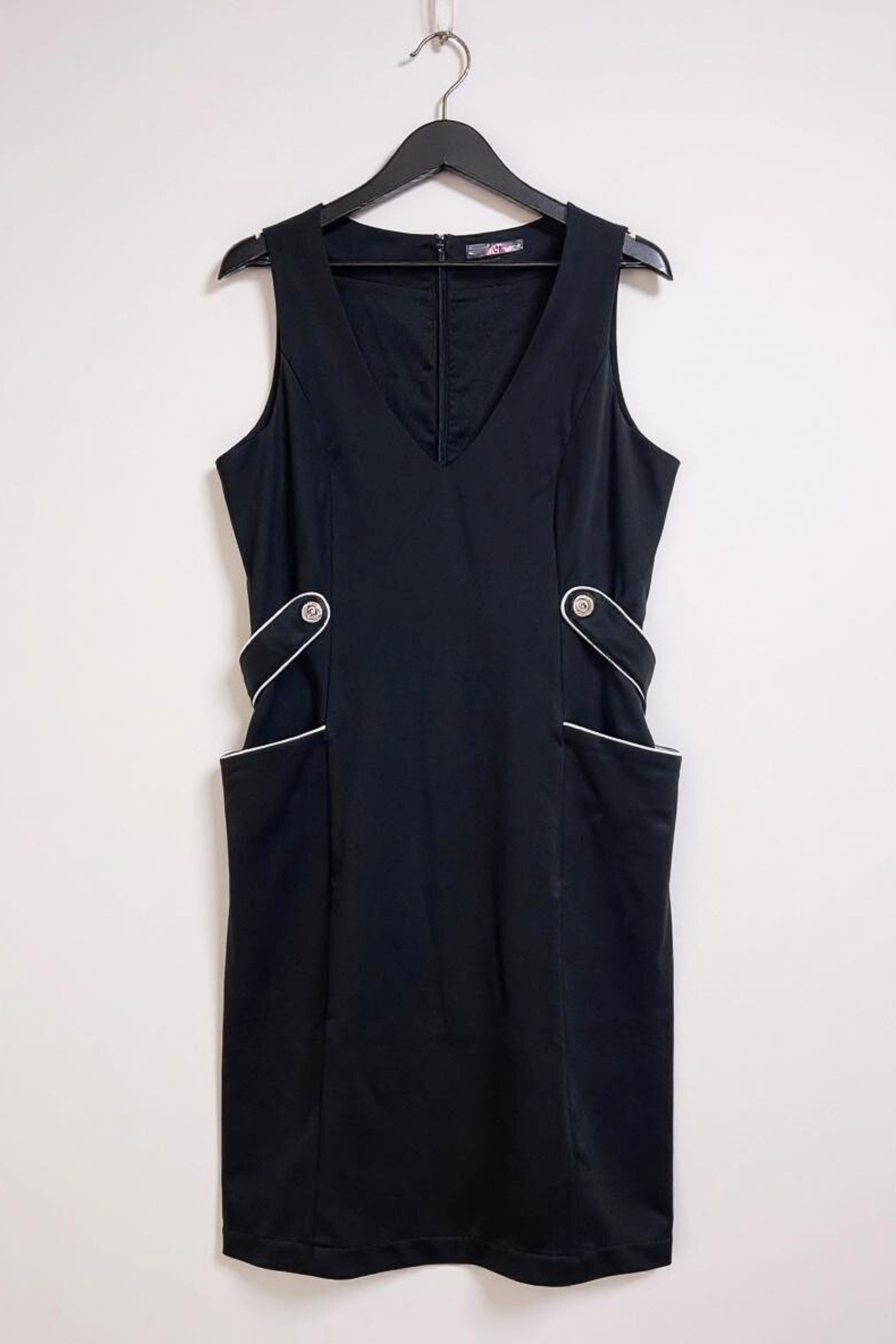 - Classic Black Shift Dress – A timeless sleeveless dress in deep black, designed with a flattering V-neckline and a straight, structured silhouette that works for any occasion.
