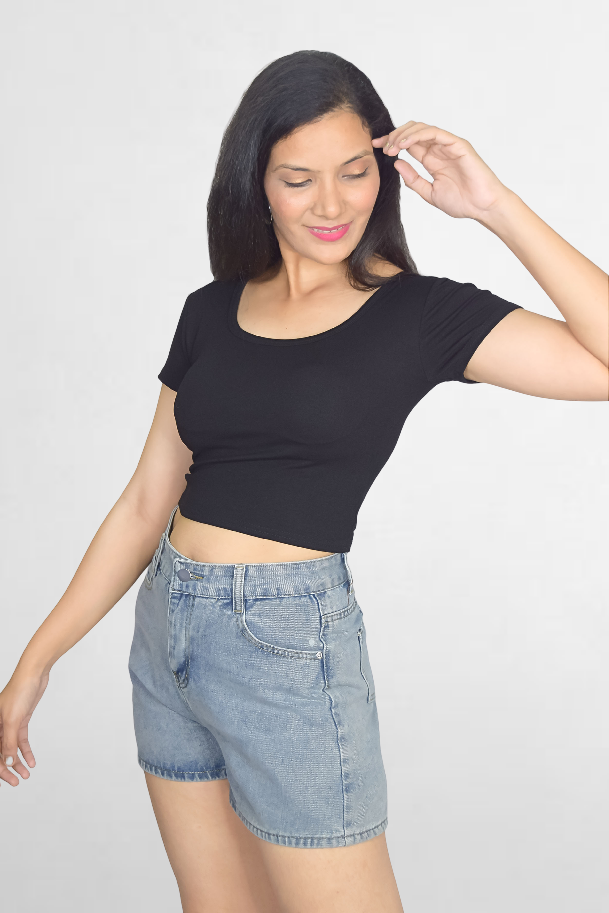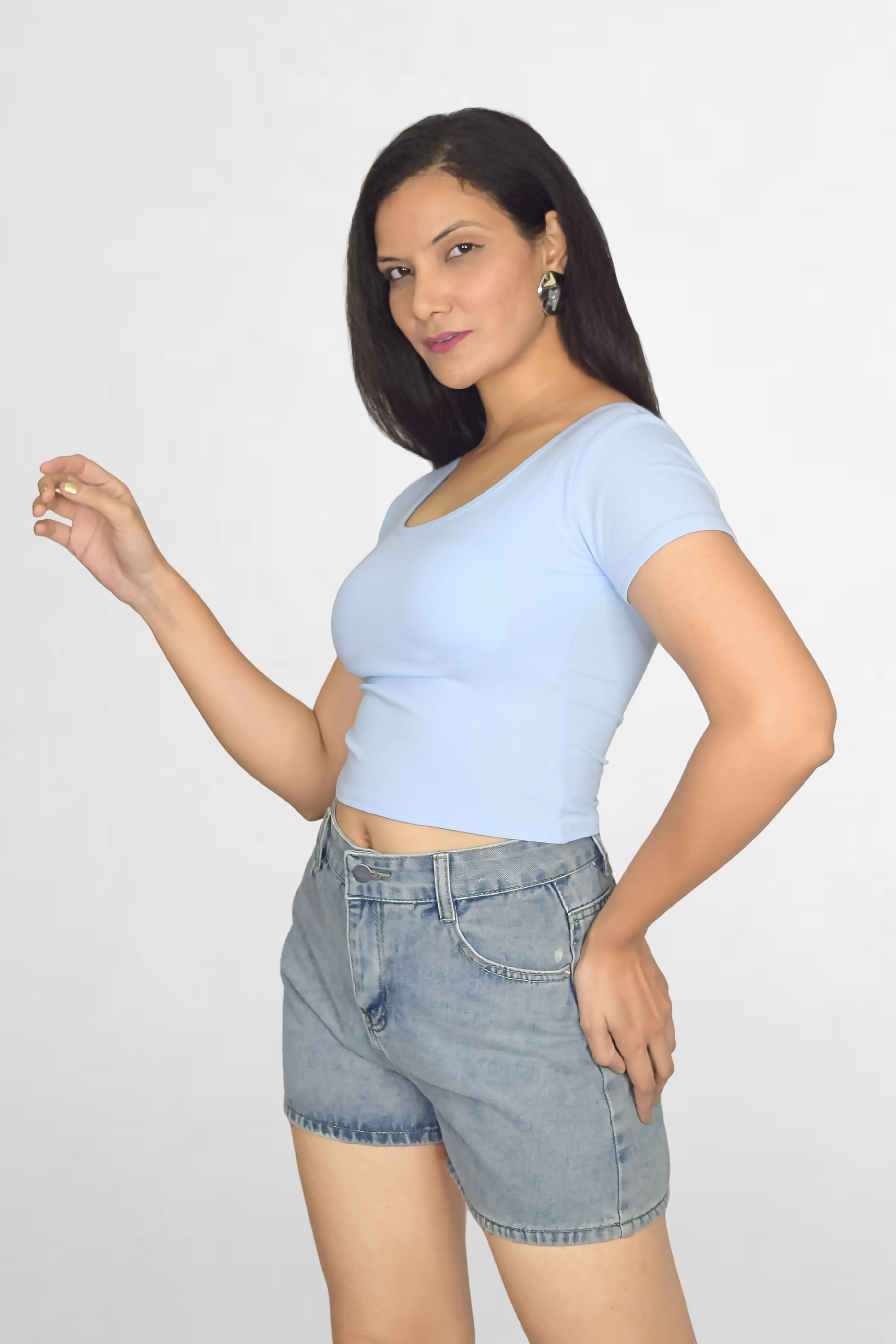 Chic Back Strap Design – Soft pastel crop top featuring three horizontal strap details at the back for a playful yet stylish look.