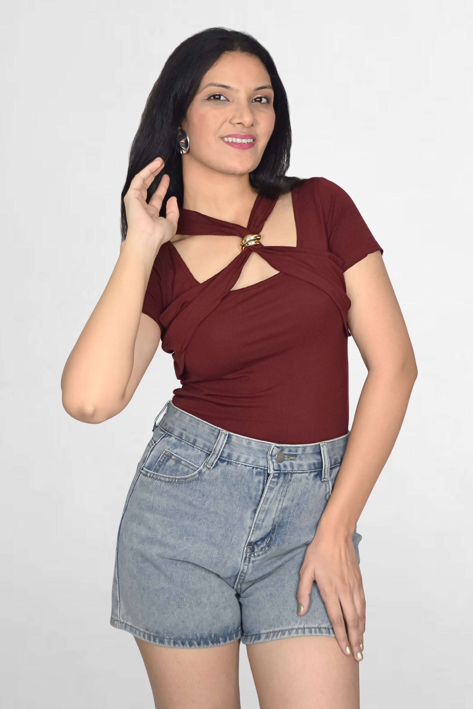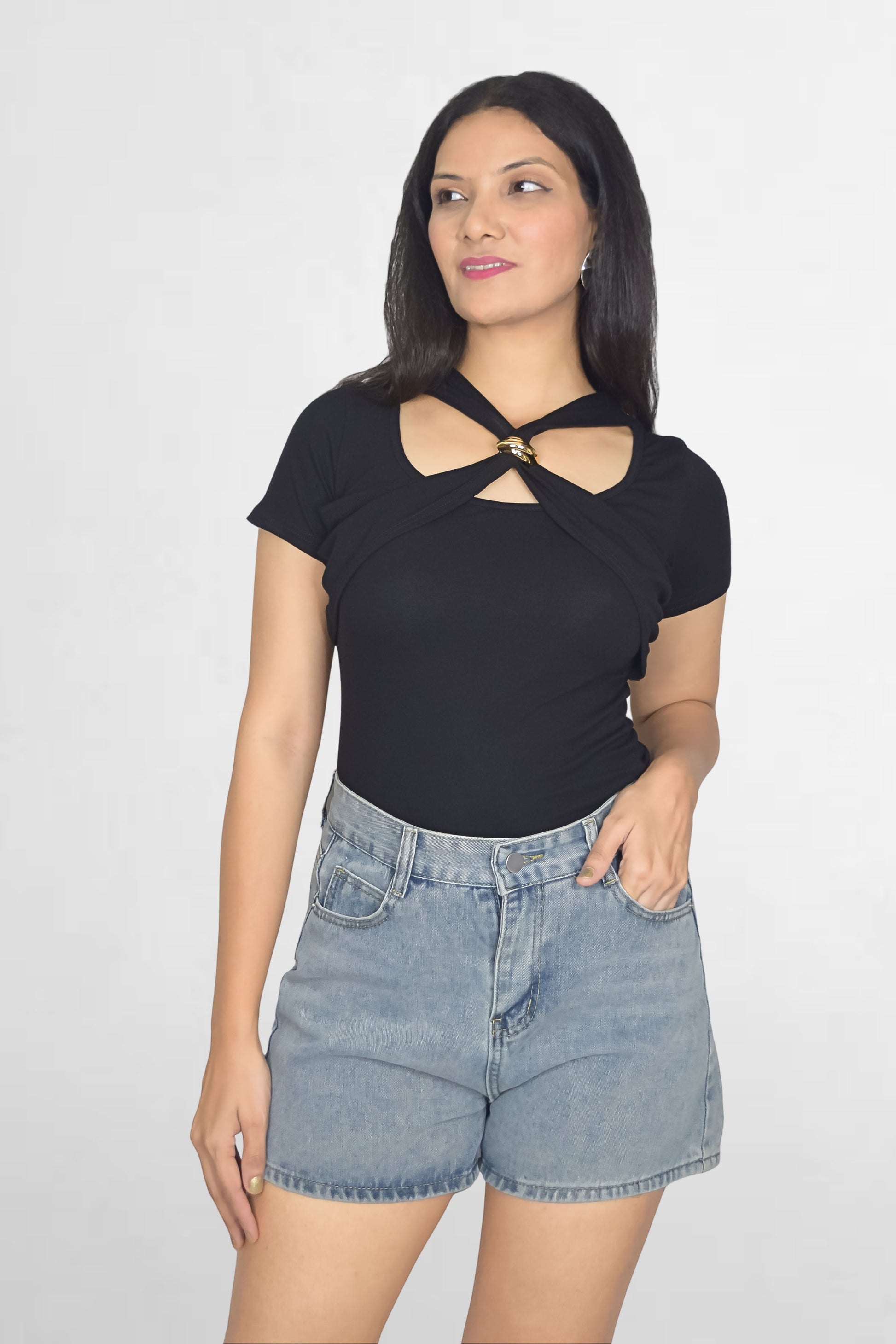 Statement Cut-Out Design – Eye-catching front cut-out with a gold-tone ring detail adds a bold, trendy touch.